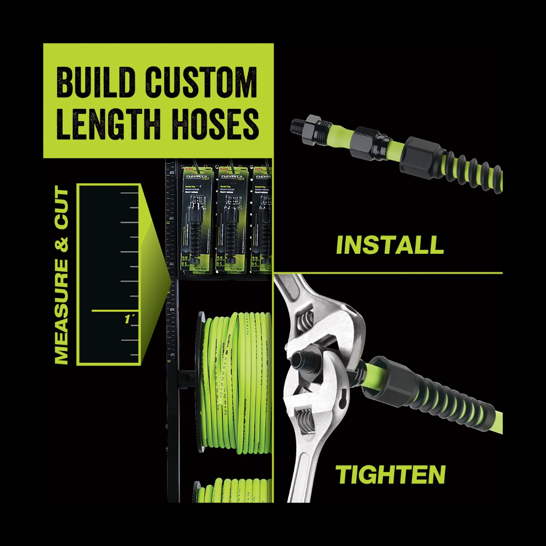 Flexzilla® Pro Bulk Hose Spool gives you premium Flexzilla hose in bulk so you can create custom-length hose runs for your shop, reel, or job site layout. Built from our signature flexible, durable hybrid polymer, this bulk spool is ideal for long air lines, multiple drops, or replacing old hose. Use it with Flexzilla anodized aluminum reusable fittings and splicers (sold separately) to assemble custom hoses and repair damaged sections on-site without special tools.
